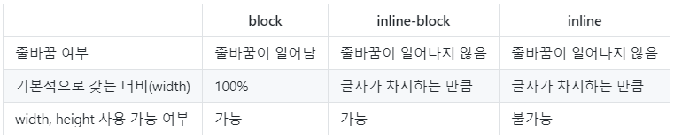줄 바꿈이 되는 박스(block) vs 옆으로 붙는 박스(inline, inline-block)